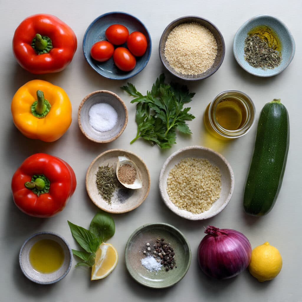 Colorful stuffed bell peppers filled with fluffy herbed quinoa, fresh vegetables, and bright Mediterranean flavors, baked until tender and perfectly satisfying.