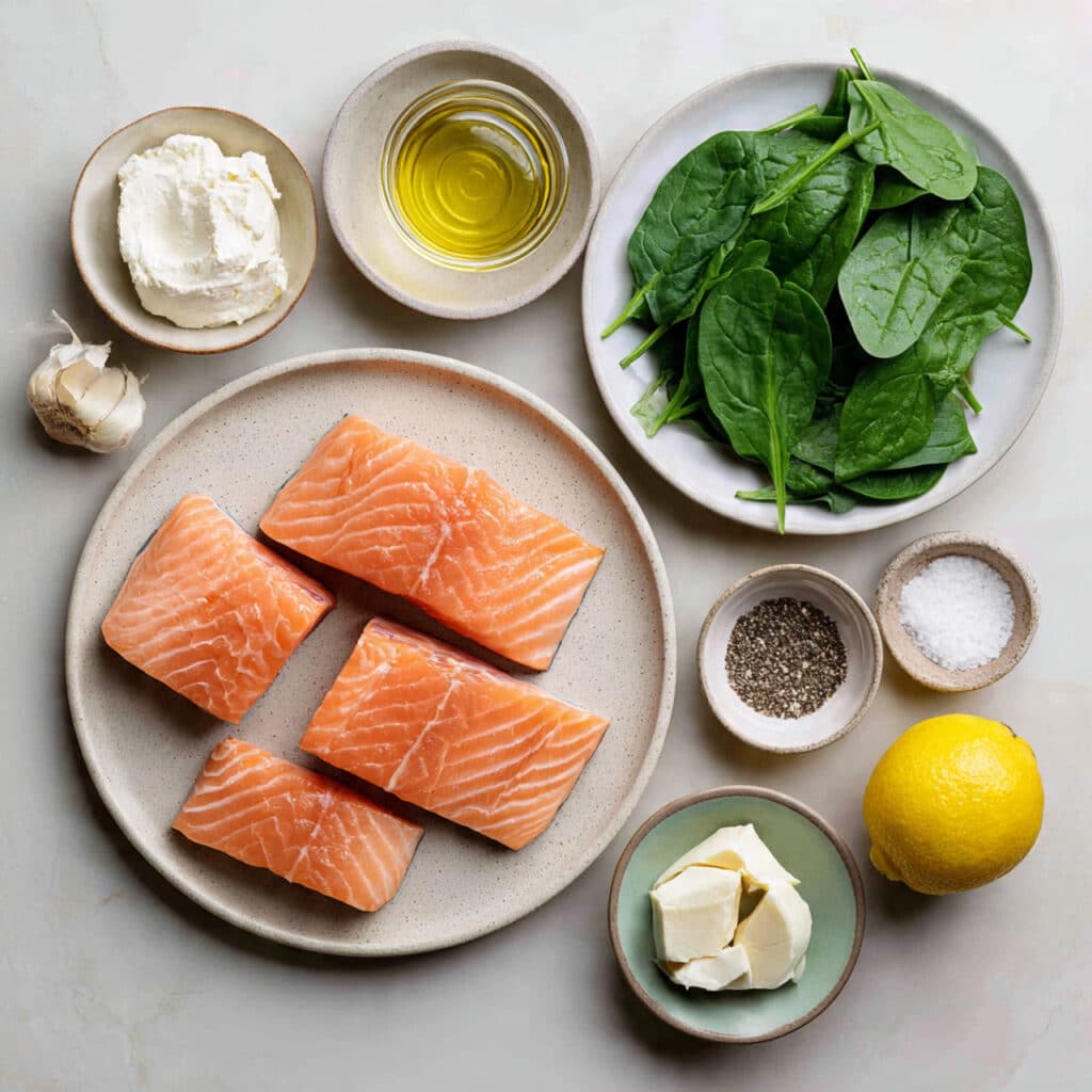 As the salmon cooks, it becomes tender and flaky while the filling turns warm and creamy. The slight crispness on the edges contrasts beautifully with the soft center. The garlic and lemon bring brightness, while the spinach adds a fresh balance that keeps everything from feeling too heavy.