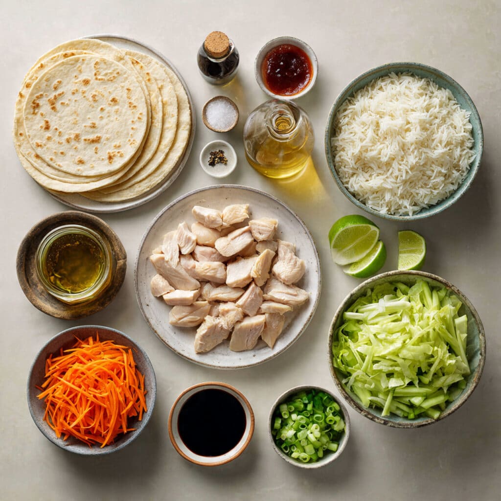 Cucumber: This might sound like a simple add-in, but it is what keeps the wrap lively. That cool crispness cuts through the warm rice and saucy chicken in the best way.
