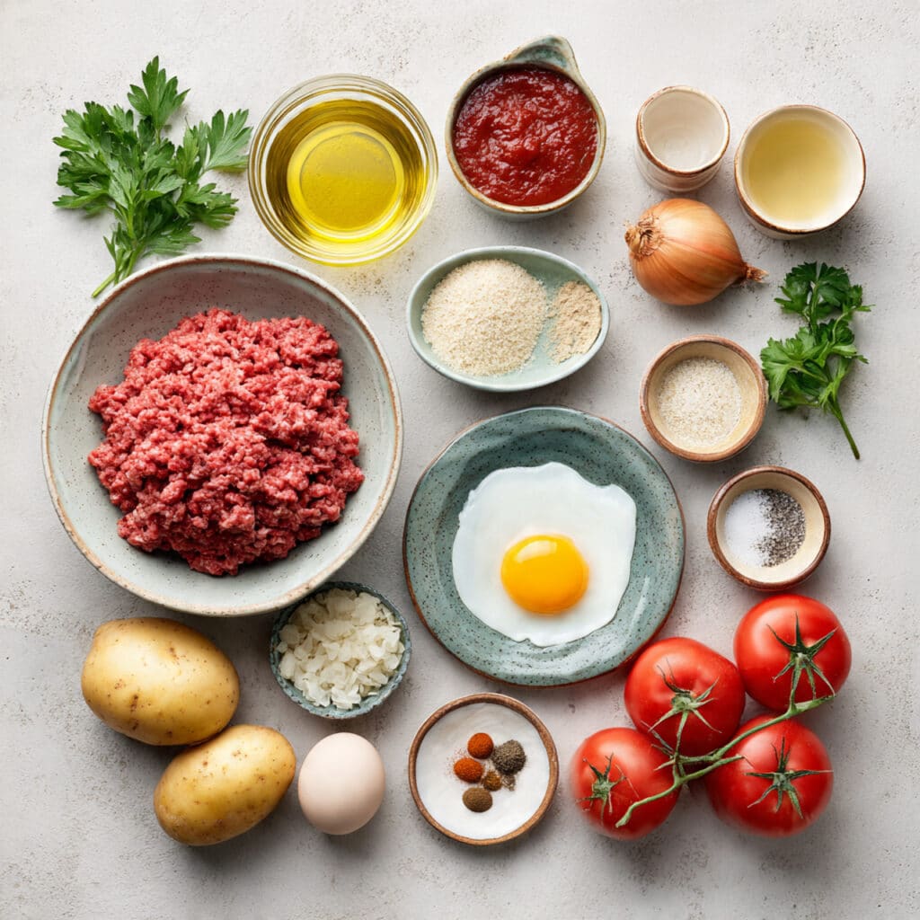 A comforting Turkish-style baked meatball dish with tender potatoes, green pepper, tomatoes, and a savory tomato sauce. It is hearty, family-friendly, and perfect for a cozy dinner.