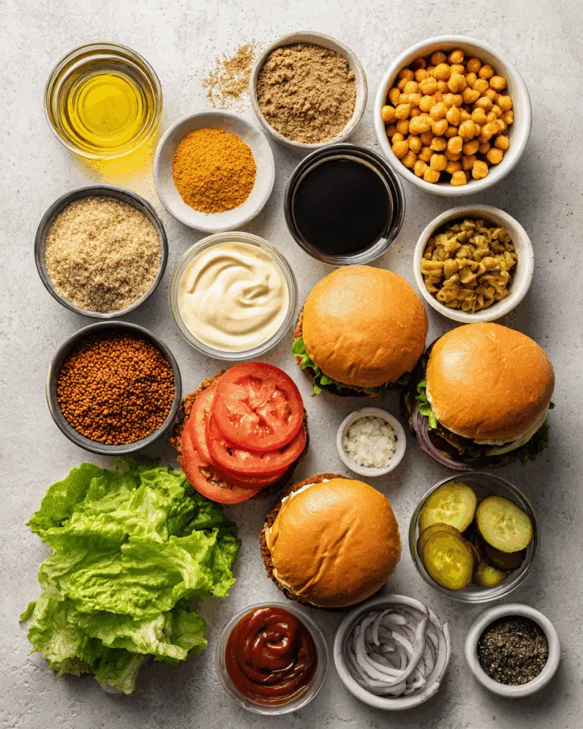 Ingredients in Vegan Smash Burger with Protein Patty and BBQ Mayo