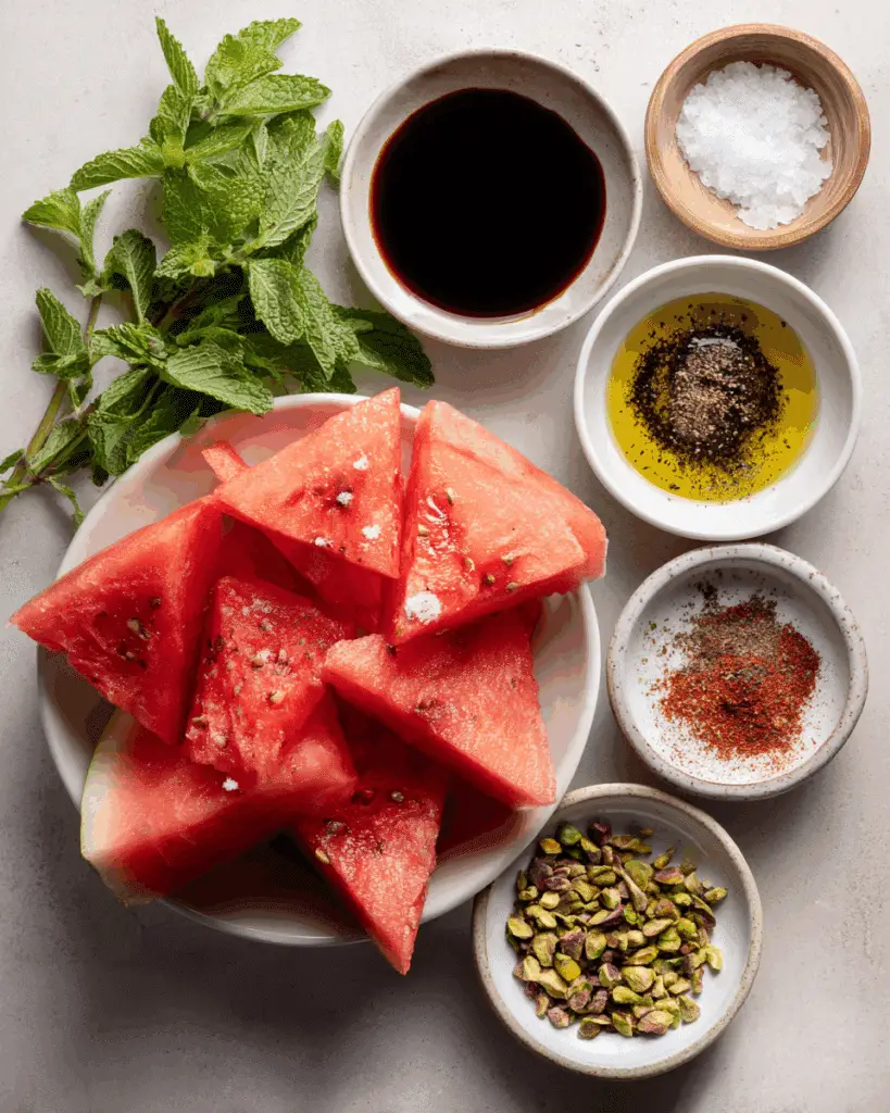 Each ingredient plays a key role in elevating the watermelon from sweet treat to savory star.